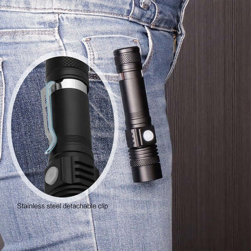 • Kompakt und tragbar: Mit Taschenclip für einfachen Transport.