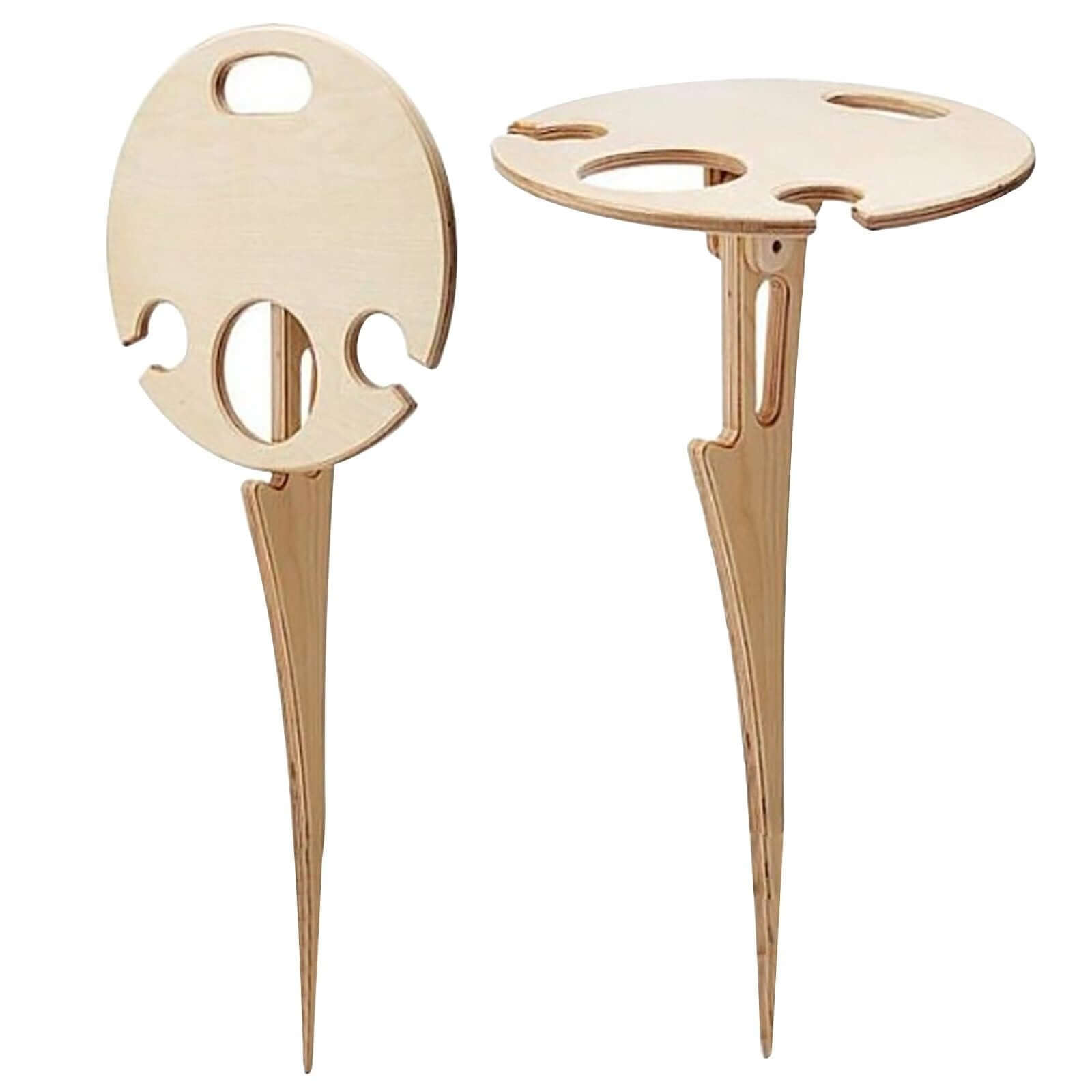Genießen Sie ein stilvolles Picknick mit unserem klappbaren Weintisch aus Holz. Perfekt für Weinliebhaber, die gerne im Freien entspannen. Ob im Park, am Strand oder im eigenen Garten – dieser Tisch bietet Platz für Ihre Weinflasche, zwei Gläser und einen Teller mit Ihren Lieblingsleckereien.