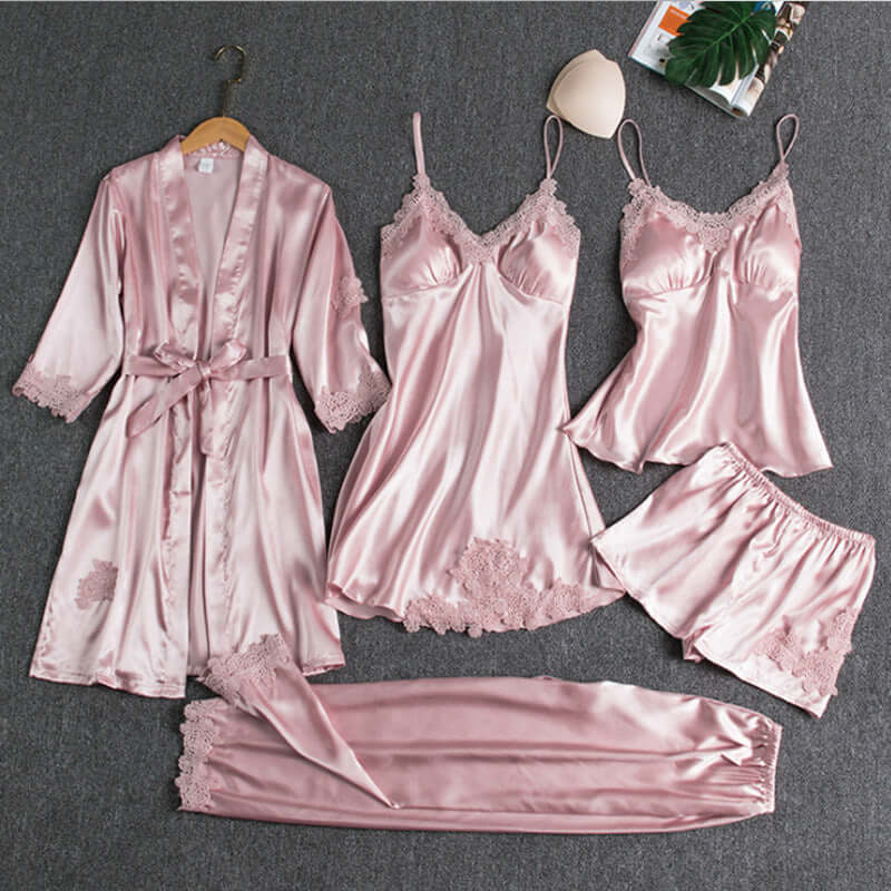 - Vielseitige Auswahl: Das Set umfasst ein langärmliges Shirt, Shorts, ein elegantes Nachthemd und einen Bademantel – für jeden Stil die perfekte Wahl.