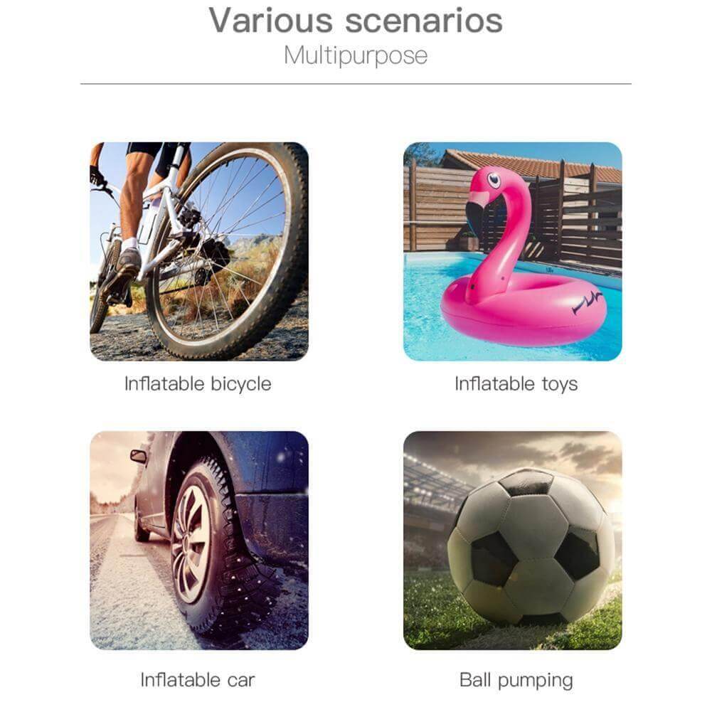 Mit der tragbaren elektrischen Luftpumpe sind platte Reifen kein Problem mehr. Klein, leicht und leistungsstark, ist sie der ideale Begleiter für Auto, Fahrrad und Motorrad.