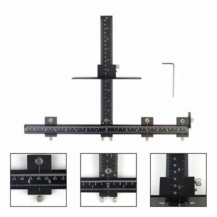 Material: Gehärtetes Aluminium mit lasergravierten Markierungen für Langlebigkeit und Präzision.
