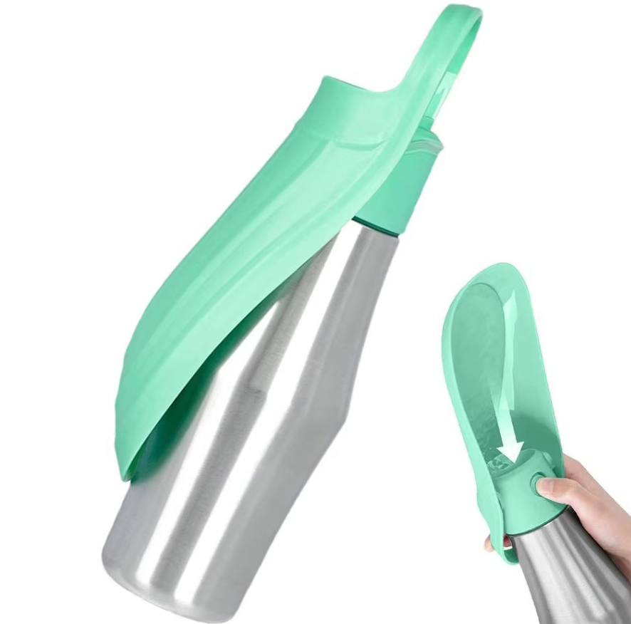 Edelstahl-Trinkflasche Für Hunde | Tragbarer WasserspenderTragbarer Wasserspender für Hunde mit faltbarem Napf