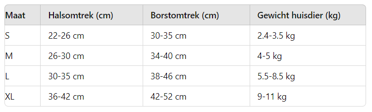 • XL: Halsumfang 36-42cm, Brustumfang 42-52cm, Gewicht 9-11kg
