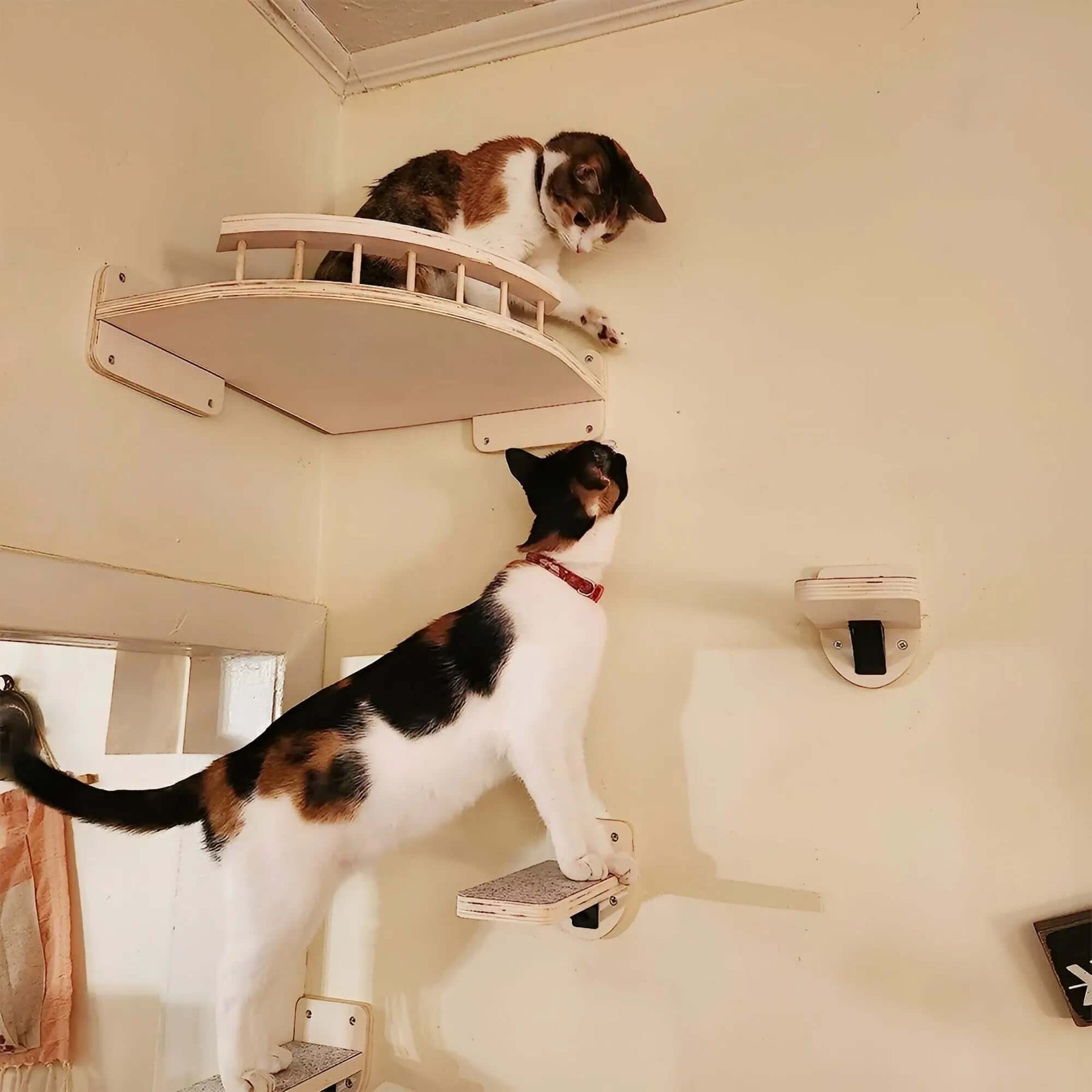 Aktive Katze, glücklicher Besitzer! Das Wandkletterbrett mit integrierter Kratzsäule bietet deiner Katze einen spannenden Kletterparcours und schont Möbel. Perfekt für alle, die Wert auf Fitness und Wohnambiente legen.