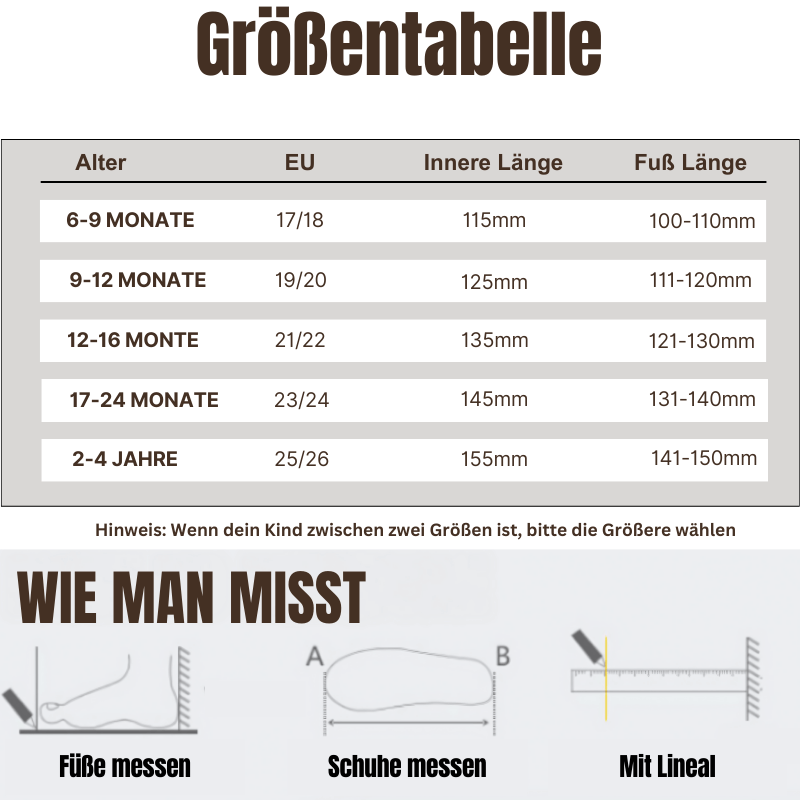 Bitte beachten Sie unsere Größentabelle, um die optimale Passform für Ihr Kind zu finden.
