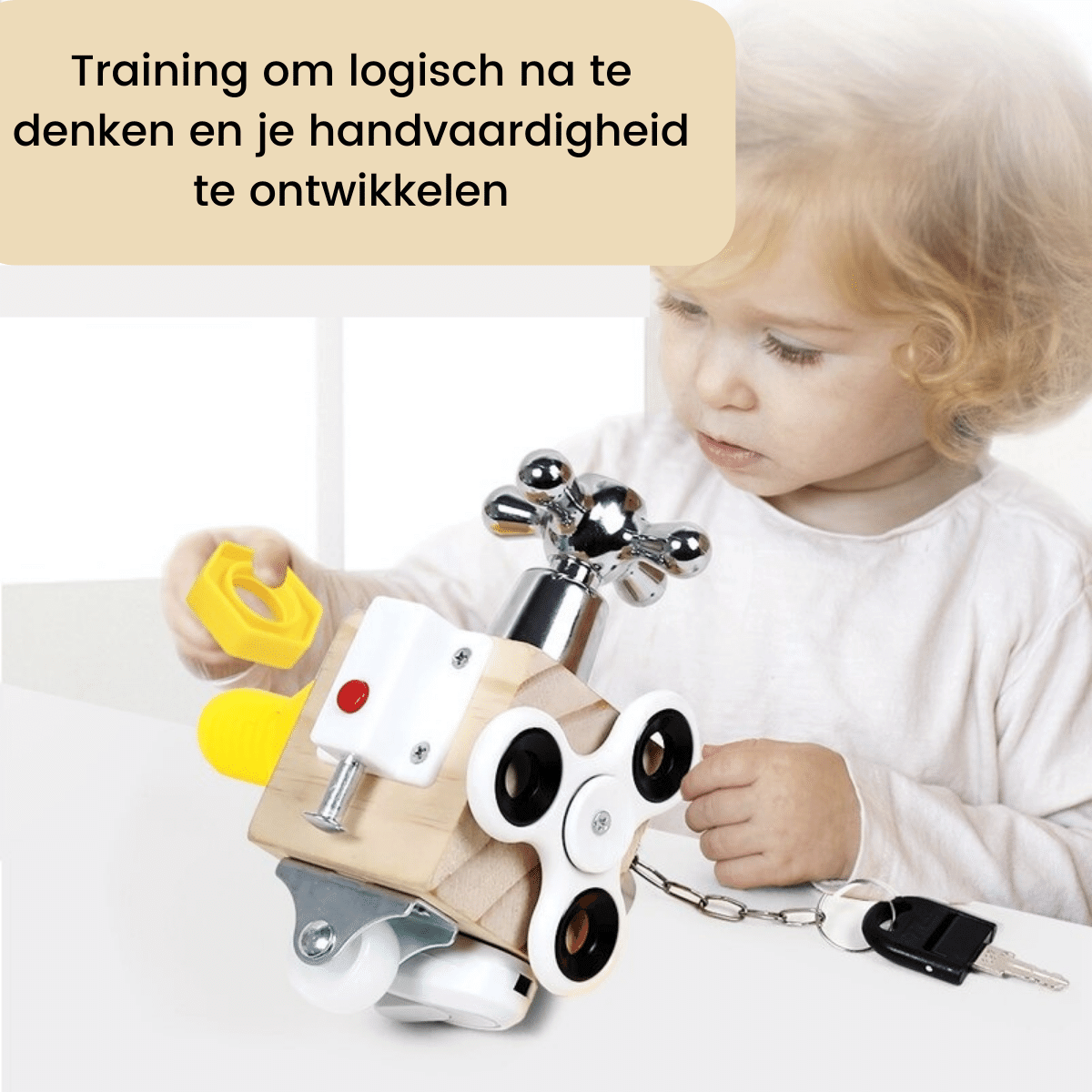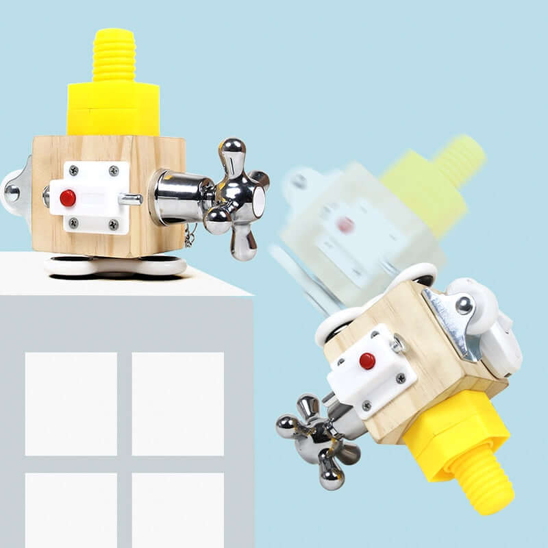 Der Würfel bietet auf jeder Seite eine neue Herausforderung und fördert die Entdeckungsfreude Ihres Kindes. Von einem Fidget Spinner bis zu einem drehbaren Wasserhahn – Ihr Kind lernt selbstständig, wie alltägliche Gegenstände funktionieren.