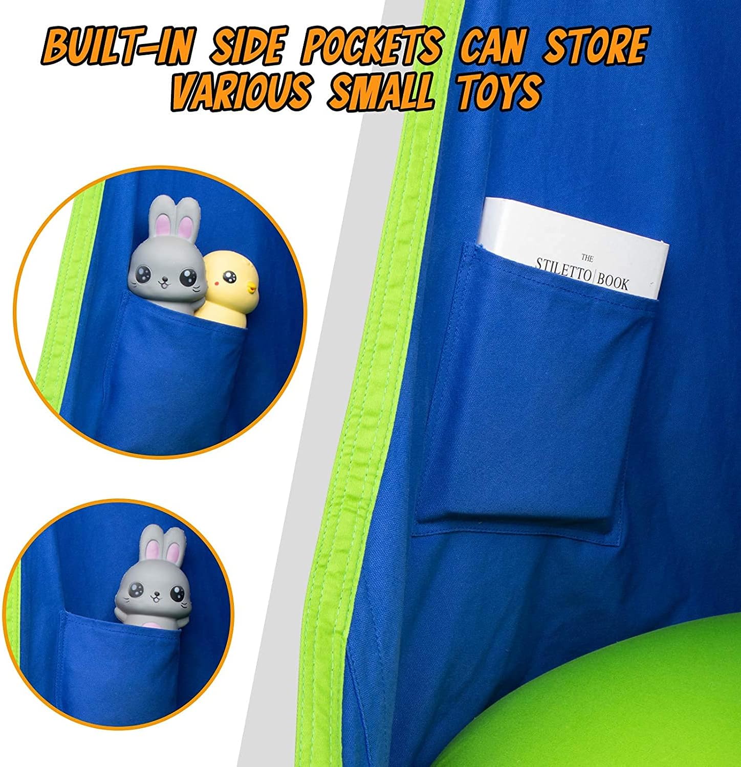 Kinder-Hängesessel mit Luftkissen, perfekt für drinnen und draußen; Blau/Grün, sanfte Schaukelbewegung, 70x150cm.