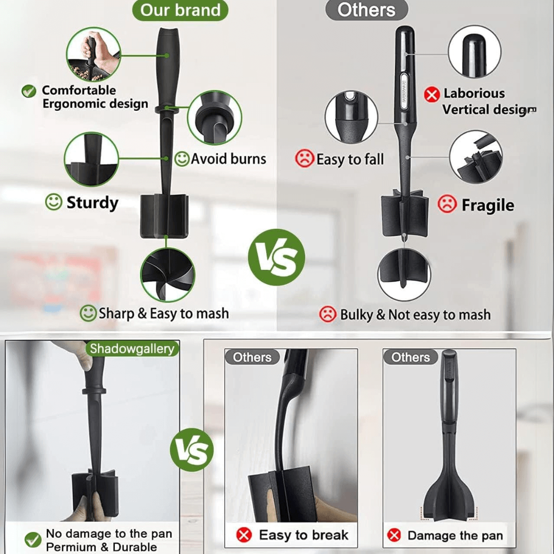 Perfekt für Tacos, Chili, Pfannengerichte und mehr. Zerkleinert Fleisch gleichmäßig für eine kürzere Garzeit. Mühelose Zubereitung von Hackfleisch, Geflügel und anderem Fleisch.