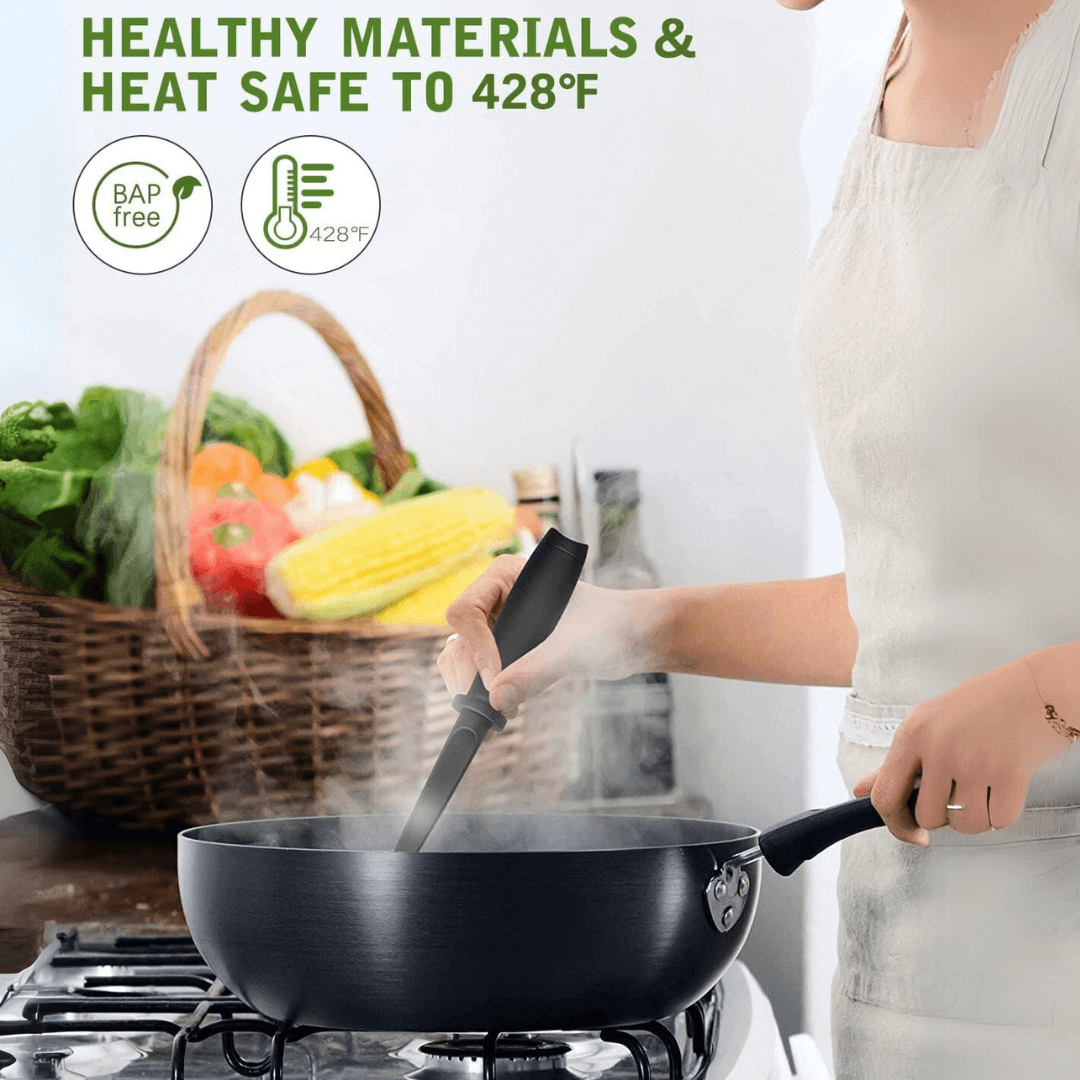 Der strapazierfähige Nylonkopf ist bis 220°C hitzebeständig und sanft zu Antihaftpfannen. Der ergonomische Griff sorgt für Komfort beim Gebrauch.
