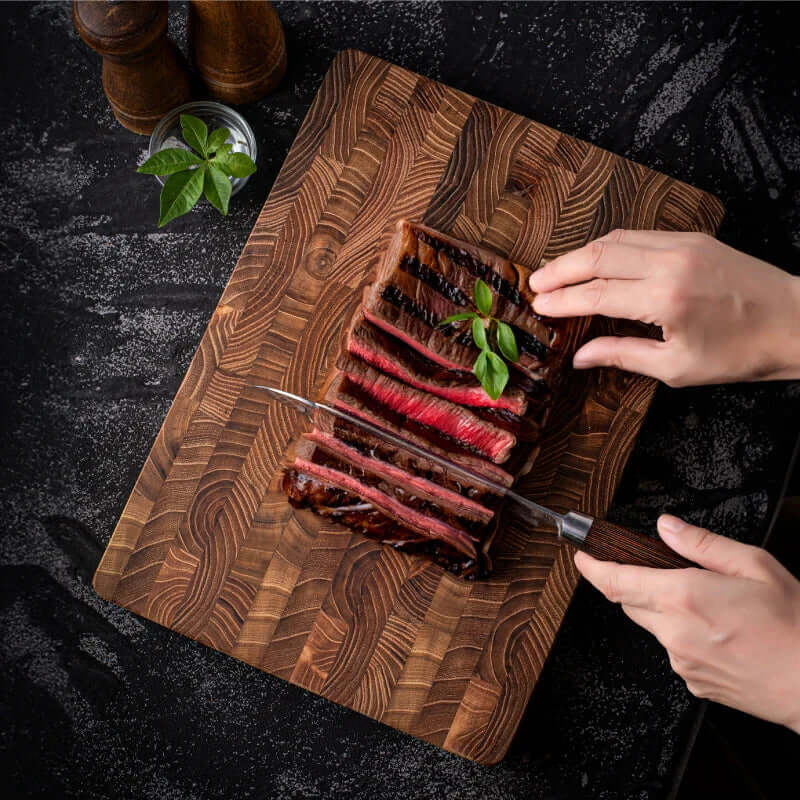 • Langlebiges Stirnholz: Besonders robust und schont Ihre Messer.