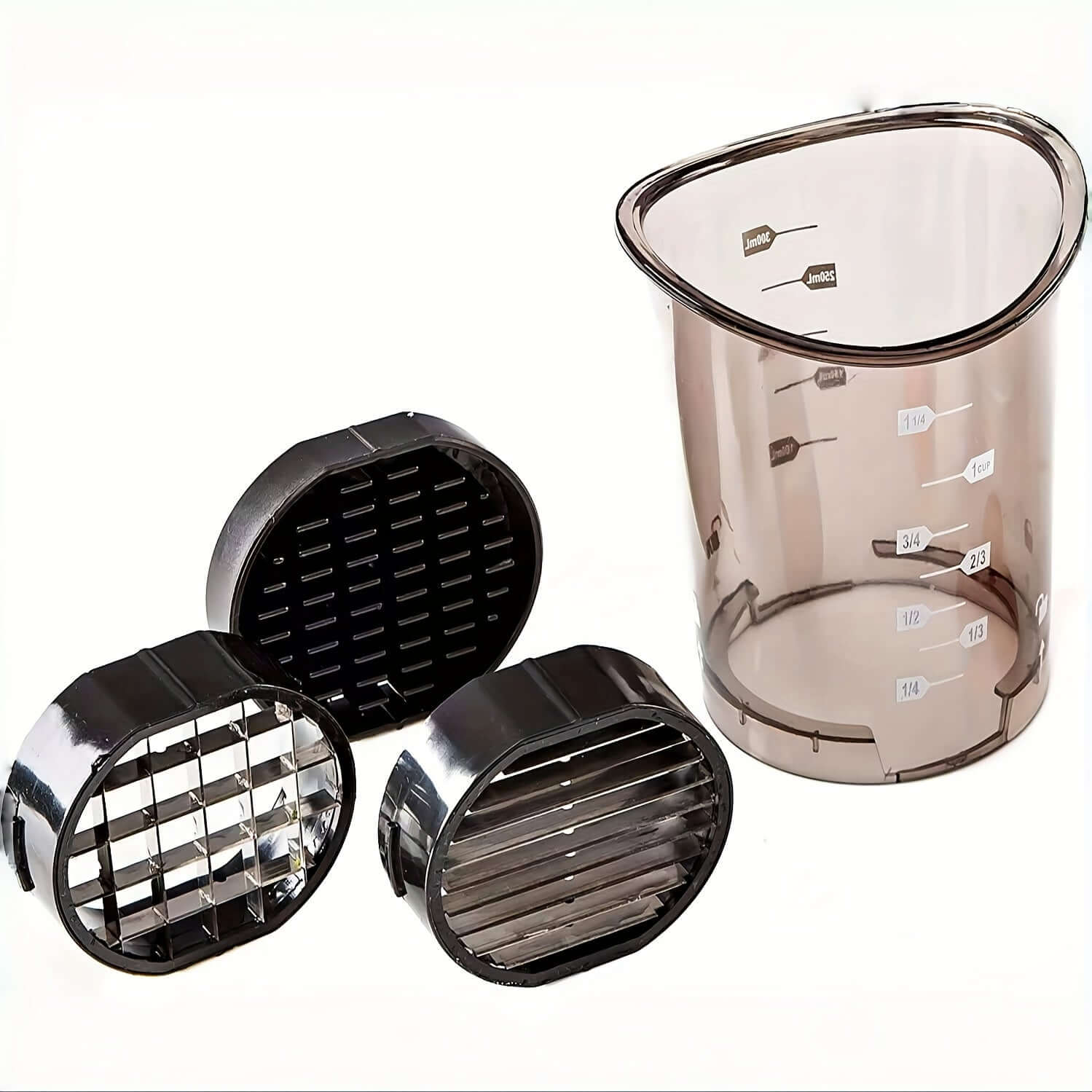Vereinfache deine Küchenarbeit und bestelle noch heute unseren manuellen 3-in-1 Schneider & Zerkleinerer. Erlebe die Vorteile effizienten Schneidens und Zerkleinerns!