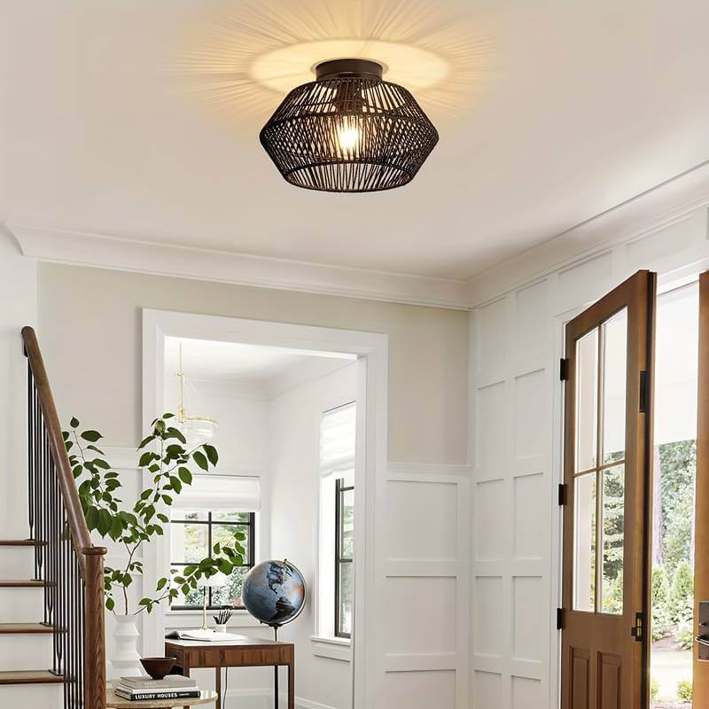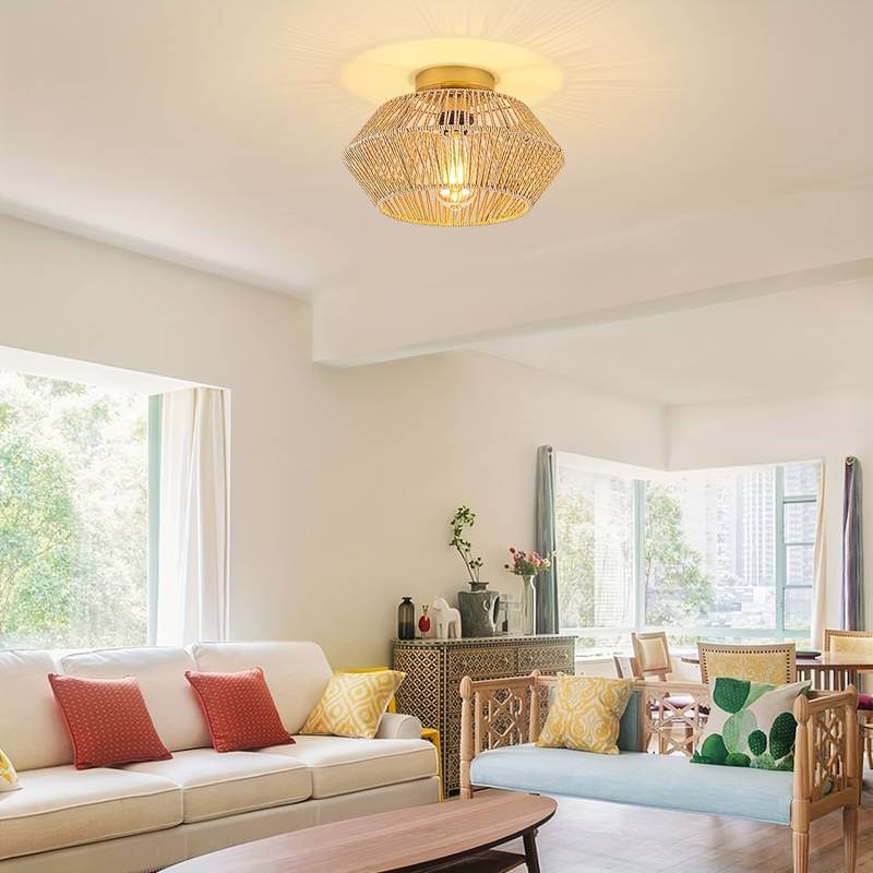 Verleihen Sie Ihrem Zuhause einen Hauch von Boho-Chic mit dieser handgefertigten Deckenleuchte. Das einzigartige Design schafft eine warme und einladende Atmosphäre.