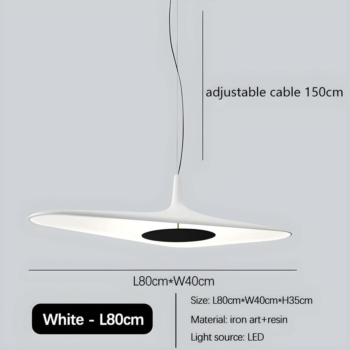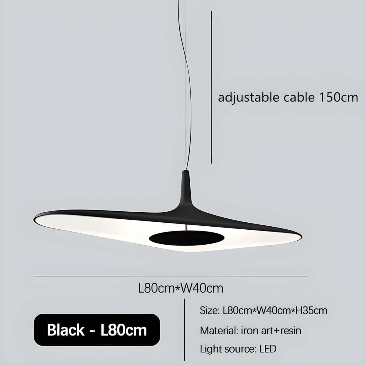 Genießen Sie eine angenehme Beleuchtung mit der integrierten LED-Lichtquelle. Das moderne Design der Leuchte fügt sich nahtlos in verschiedene Einrichtungsstile ein und wird zum Blickfang in Ihrem Zuhause. Die Hängelänge ist bis zu 150 cm einstellbar, sodass Sie die perfekte Höhe für Ihren Raum wählen können.