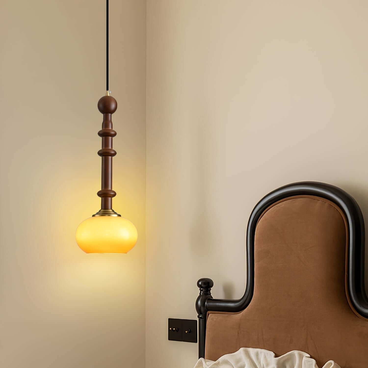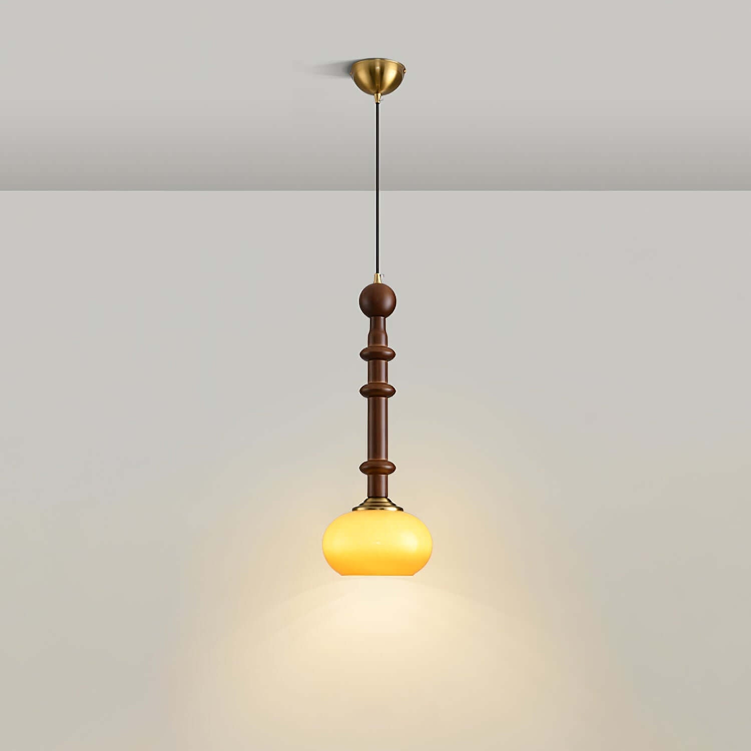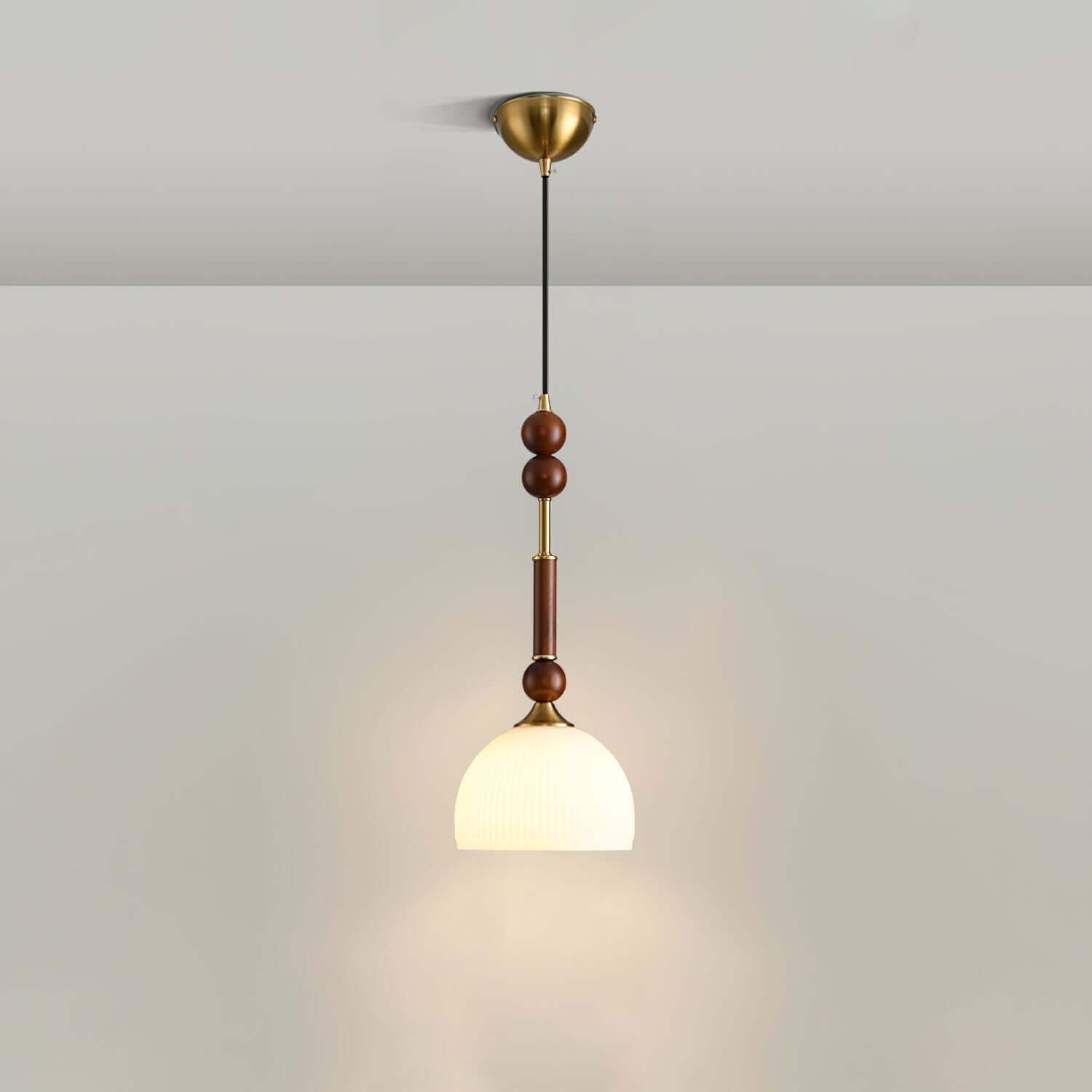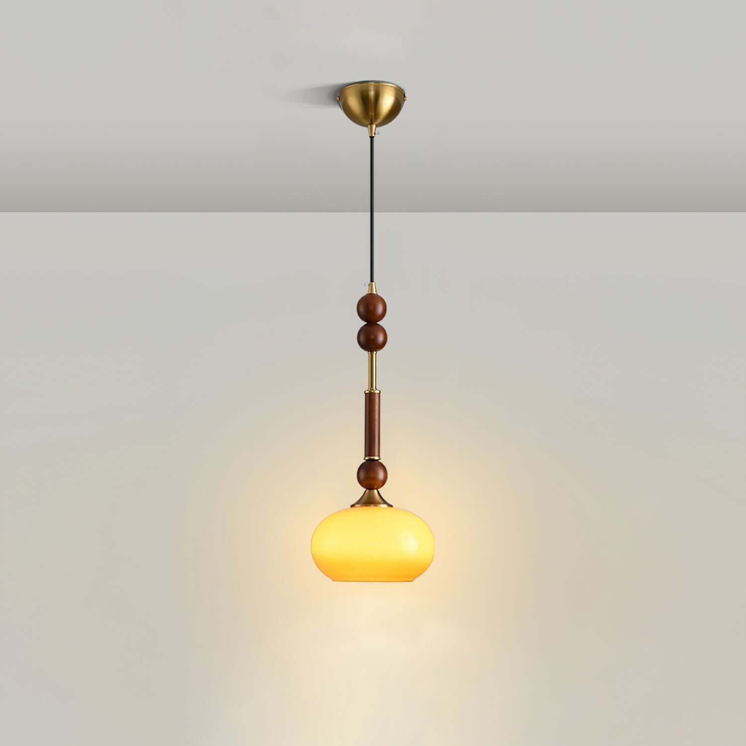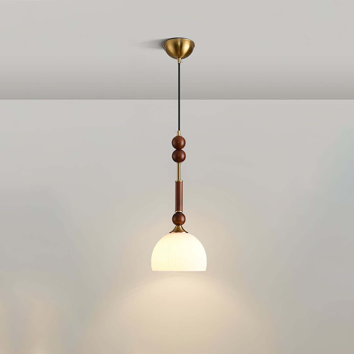 Verleihen Sie Ihrem Zuhause einen Hauch von zeitloser Eleganz mit unserer exquisiten Pendelleuchte. Das warme, einladende Licht, das durch den gläsernen Lampenschirm scheint, schafft eine gemütliche und stilvolle Atmosphäre. Die Kombination aus Holz- und Messingelementen verleiht der Leuchte einen Hauch von Luxus, während der Vintage-Reißverschluss einen klassischen Charme versprüht.