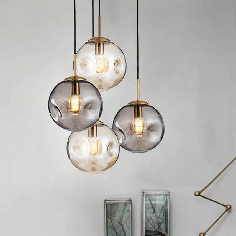 Verleihen Sie Ihrem Interieur einen Hauch von modernem Chic mit dieser exquisiten Pendelleuchte. Die kugelförmige Glasleuchte in Gold verleiht jedem Raum eine warme und einladende Atmosphäre.