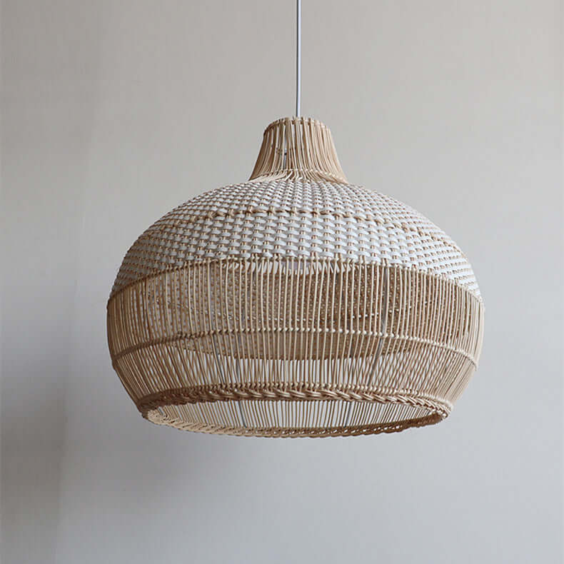 Jedes Stück ist sorgfältig von Hand aus natürlichem Rattan gefertigt und verleiht Ihrem Zuhause eine einzigartige Textur und Wärme. Die luftige, geflochtene Konstruktion sorgt für ein sanftes, diffuses Licht, das perfekt für Essbereiche, Wohnzimmer oder gemütliche Ecken ist.