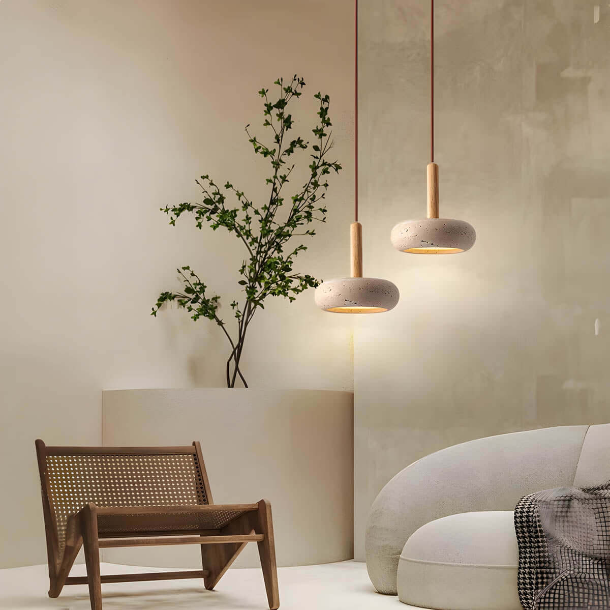 Bringen Sie natürliche Eleganz in Ihr Zuhause mit der Hängeleuchte aus Travertin-Naturstein