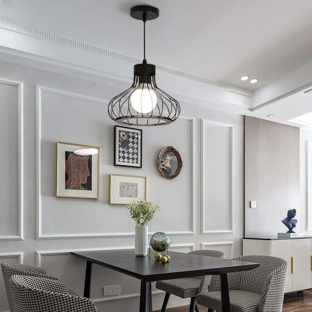 Die moderne Metall-Pendelleuchte verkörpert moderne Eleganz und verbindet Vintage-, Industrie- und Retro-Elemente. Diese kreative Pendelleuchte aus hochwertigem Metall wertet jedes Ambiente auf.