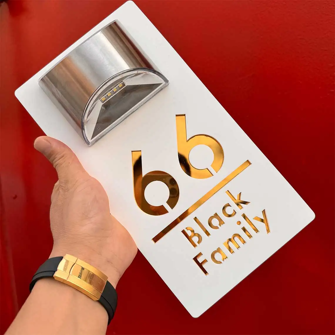 Dieses stilvolle und funktionale Solar-LED-Hausnummernschild erhellt Ihren Hauseingang auf bemerkenswerte Weise. Mithilfe von Solartechnologie und energieeffizienter LED-Beleuchtung bleibt Ihr Zuhause auch bei Dunkelheit sichtbar und einladend.