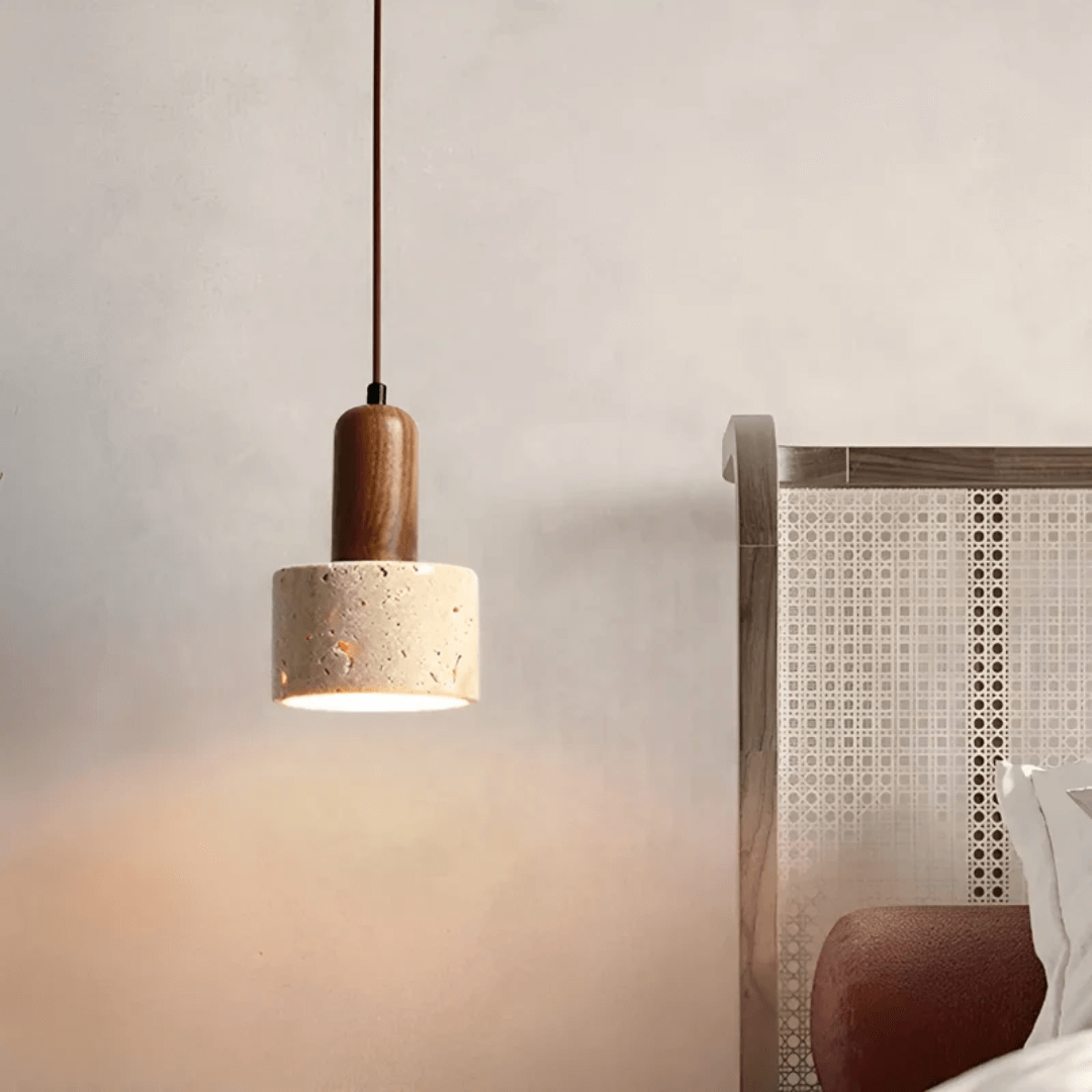 Wabi-Sabi Deckenleuchte Travertin & Holz