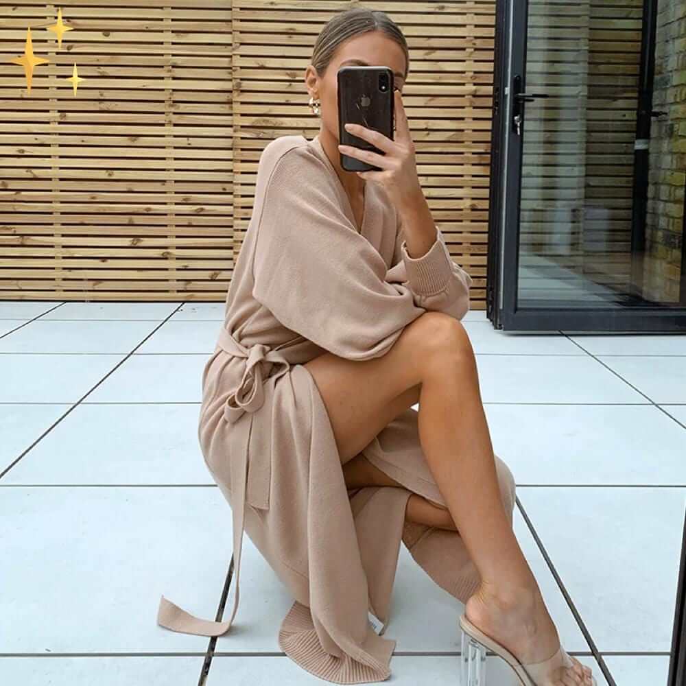 Luxus und Gemütlichkeit vereint. Dieses Bademantelkleid ist ideal, um sich stilvoll zu entspannen, ohne auf Komfort zu verzichten. Perfekt, um Ihrem Alltag eine Prise Luxus hinzuzufügen.