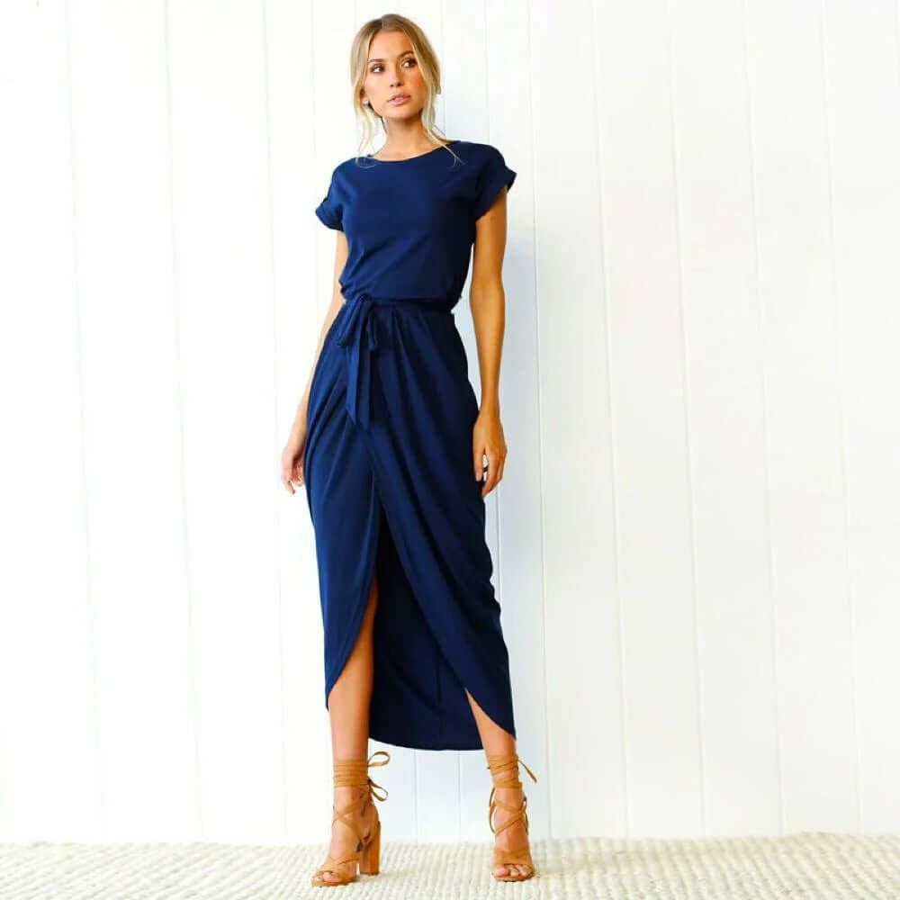 Ein Kleid für jeden Anlass! Entdecken Sie das Sommer Midi Wickelkleid mit Taillenband und Schlitz – die perfekte Mischung aus zeitlosem Stil und maximalem Komfort. Egal, ob für den Tag oder den Abend, dieses Kleid verleiht Ihnen einen stilvollen und eleganten Look.