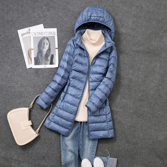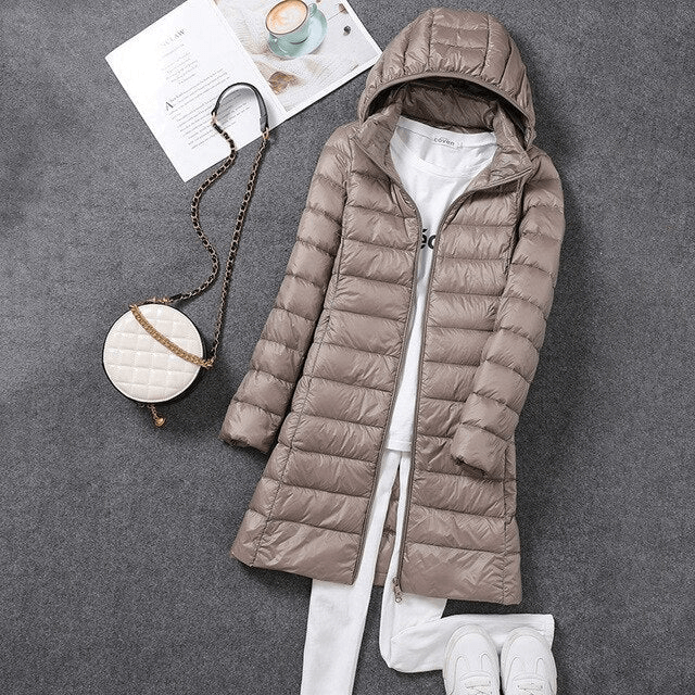 Ultraleichter langer Puffermantel