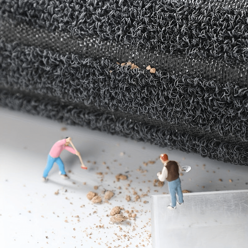 Legen Sie die Matte einfach im gewünschten Bereich aus. Bei Bedarf kann die Matte abgespritzt oder ausgeschüttelt werden.