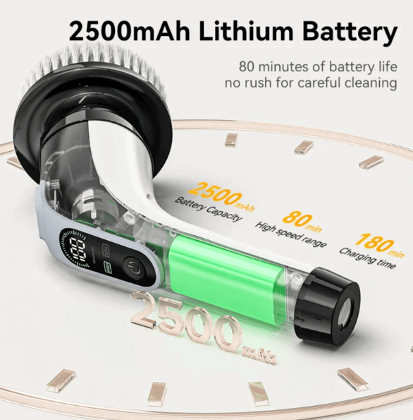 Hartnäckiger Schmutz und Flecken gehören der Vergangenheit an! Unsere kabellose elektrische Reinigungsbürste mit 7 Wechselaufsätzen macht die Reinigung mühelos und effizient. Verabschieden Sie sich von mühsamen Schrubben und entdecken Sie die einfache und komfortable Reinigung Ihrer Flächen – von Fliesen bis zum Auto.