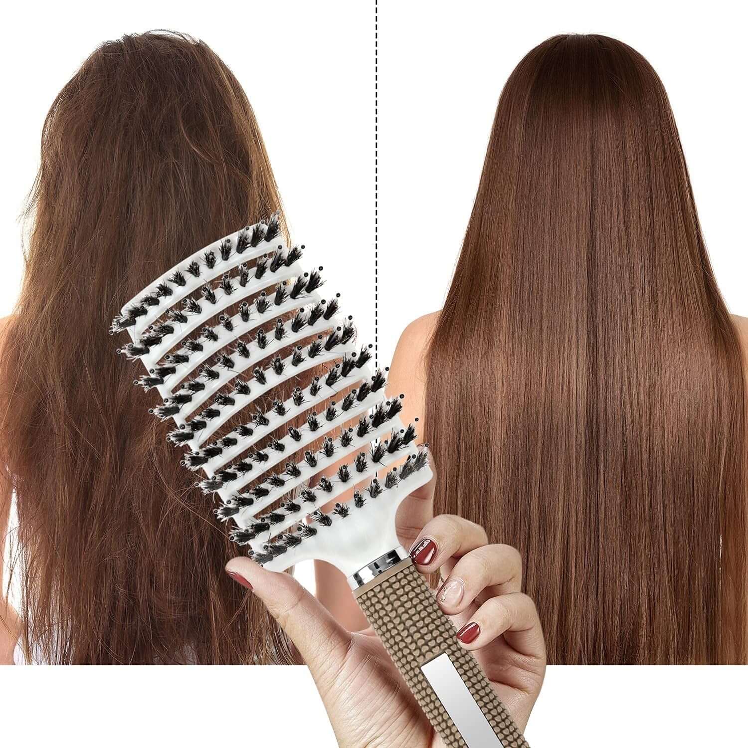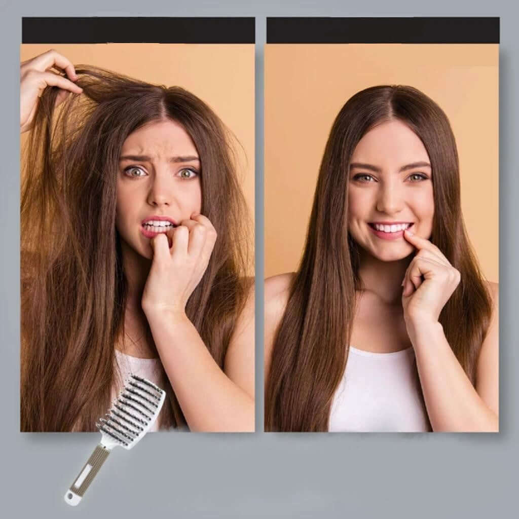Verabschieden Sie sich von schmerzhaftem Bürsten und Haarschäden! Unsere innovative Entwirrbürste gleitet mühelos durch jedes Haar, ob nass oder trocken, lockig oder glatt.