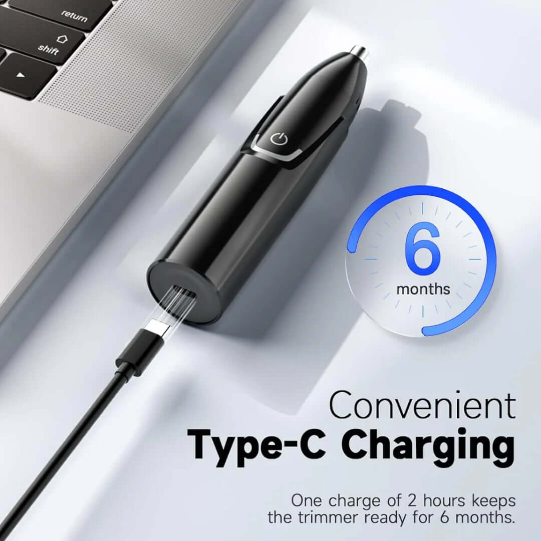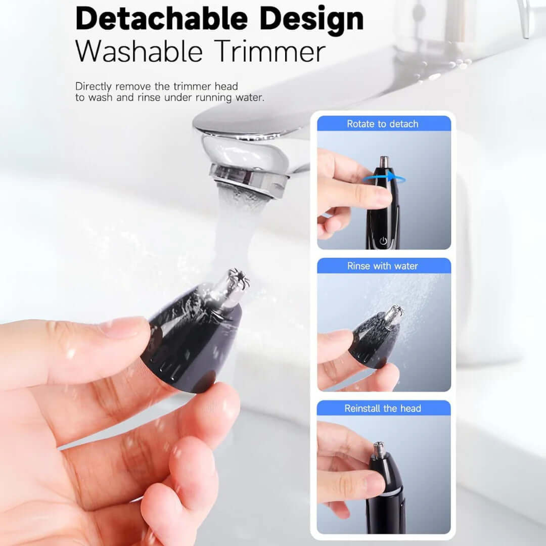 Dieser wiederaufladbare Nasen- und Ohrenhaartrimmer sorgt für perfekte Pflege und ein gepflegtes Aussehen – schnell, einfach und bequem, zu Hause oder unterwegs.