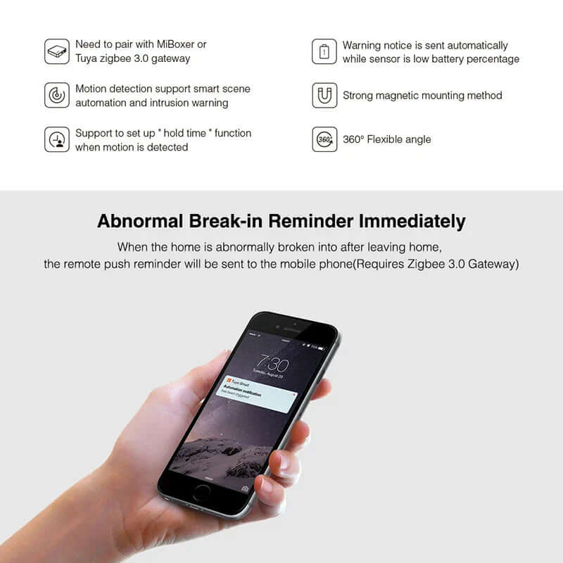 Sichern Sie Ihr Zuhause mit dem innovativen Zigbee Bewegungsmelder. Dank Tuya App-Integration erhalten Sie Benachrichtigungen direkt auf Ihr Smartphone und können Ihr Zuhause jederzeit und von überall überwachen.