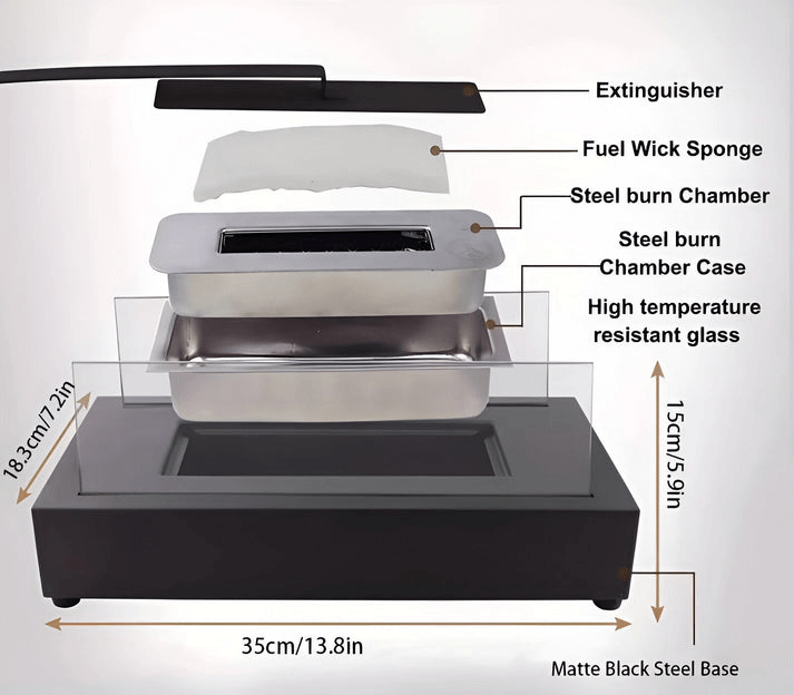 Holen Sie sich diesen modernen Tischkamin und verwandeln Sie Ihre Umgebung in einen warmen, einladenden Rückzugsort. Bestellen Sie jetzt und genießen Sie das perfekte Ambiente – rauchfrei und umweltfreundlich!