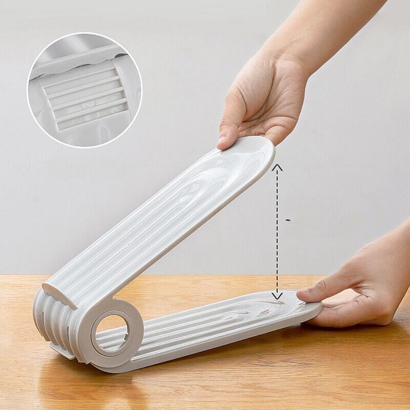 Die Verwendung des Schuhorganizers ist denkbar einfach. Dank des anpassbaren Designs können Sie die Höhe an Ihre individuellen Schuhgrößen anpassen. Das stabile Material sorgt für eine lange Lebensdauer und sicheren Halt, auch für schwerere Schuhe. So bleibt Ihr Schuhschrank stets ordentlich und übersichtlich.