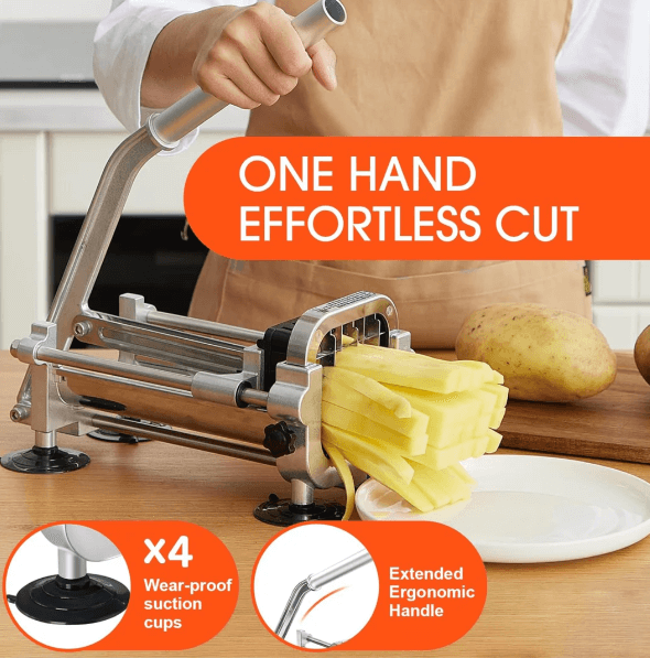 • 🥔 Präzise Schnitte: Dank scharfer Edelstahlklingen erhalten Sie gleichmäßige, perfekt dimensionierte Pommes und Gemüse-Sticks.