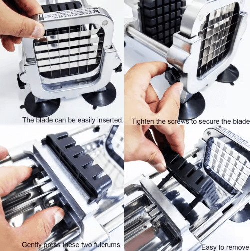 • 🔧 Robustes Design: Hochwertiger Edelstahl garantiert Langlebigkeit und Stabilität. Der Kartoffelschneider ist stabil und standsicher.