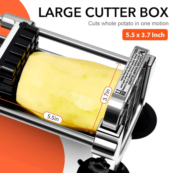 Verabschieden Sie sich vom mühsamen, manuellen Kartoffelschneiden! Unser Edelstahl Kartoffelschneider bietet eine schnelle, effiziente und einfache Lösung für die Zubereitung von Pommes frites, Gemüse-Sticks und mehr. Sparen Sie Zeit und Mühe in der Küche – ideal für alle, die Wert auf Qualität und effizientes Arbeiten legen.