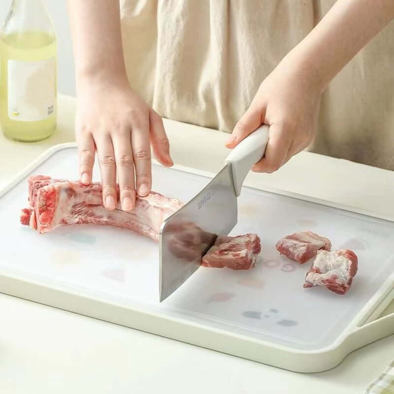 • Zwei separate Schneideflächen: Eine Seite ideal für Fleisch und Fisch, die andere für Obst und Gemüse – für optimale Hygiene.