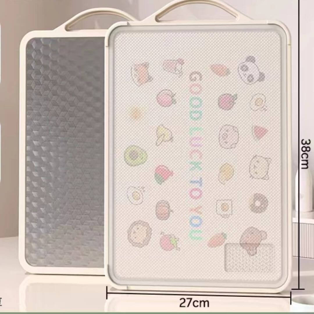 Anwendung: Verwenden Sie eine Seite für rohes Fleisch/Fisch und die andere für Obst und Gemüse. Reinigen Sie das Brett nach jedem Gebrauch gründlich mit warmem Wasser und Spülmittel.
