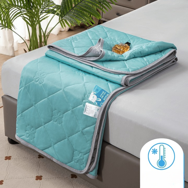 "Kühlende Sommerdecke mit atmungsaktivem Material, in zartem Aquamarin, ideal für heiße Nächte, feuchtigkeitsabsorbierend."
