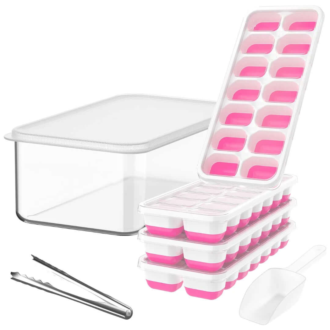 Vergessen Sie den Ärger mit herkömmlichen Eiswürfelbehältern! Unsere Silikonform wurde für einfaches Herauslösen der Eiswürfel entwickelt. Dank des flexiblen Materials drücken Sie die Eiswürfel ganz leicht heraus – ohne Kraftaufwand. Der Deckel sorgt für Ordnung und schützt vor Gefrierbrand und Gerüchen.